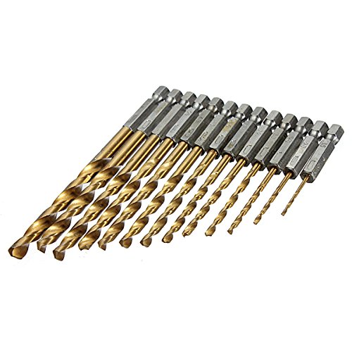 - Description : 1.5-6.5mm High Speed Steel Titanium Coated Hex Shank Drill Bit Set This set of durable 13 piece titanium nitride coated drill bits lasts six times longer than standard drill bits. Titanium nitride coating facilitates faster penetration with less effort. The 1/4 hex shank is specially designed for cordless screwdrivers, enabling you to quickly change drill bits. Specification : 1.5mm/ 0.06 inch, 2.0mm/ 0.08 inch, 2.5mm/ 0.10 inch, 3.0mm/ 0.12 inch, 3.2mm/ 0